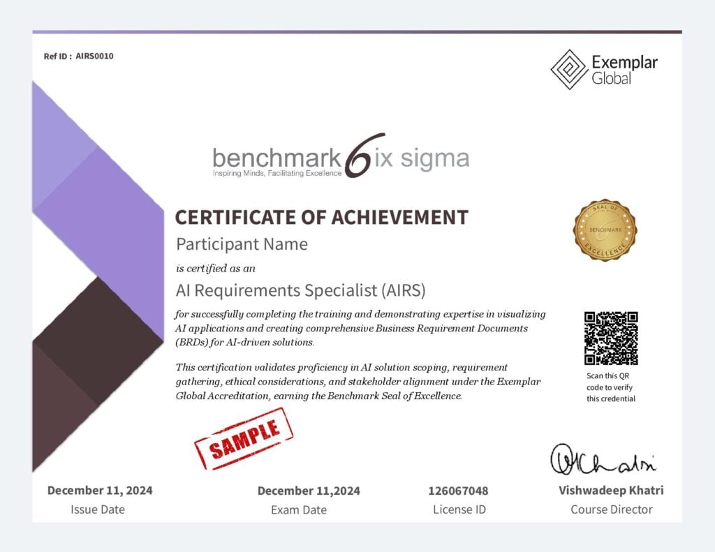 The AI Requirements Specialist (AIRS) program is designed for professionals who want to play a pivotal role in shaping AI projects by defining and documenting the business needs behind AI solutions. It is ideal for: