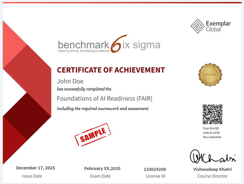 Benchmark Six Sigma is an Accredited Training Provider of Exemplar Global (formerly RABQSA), a globally recognized certification body and part of the ASQ (American Society for Quality) family.
